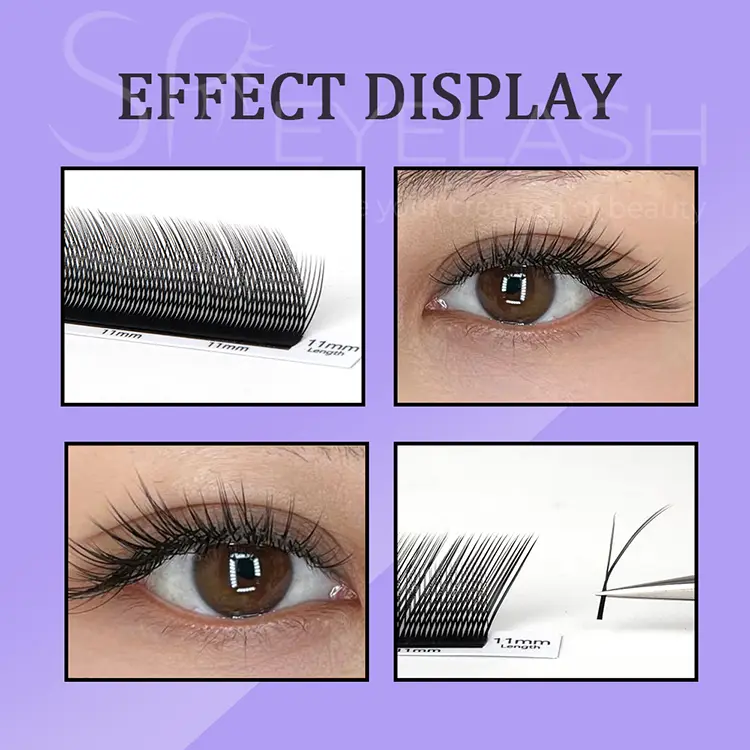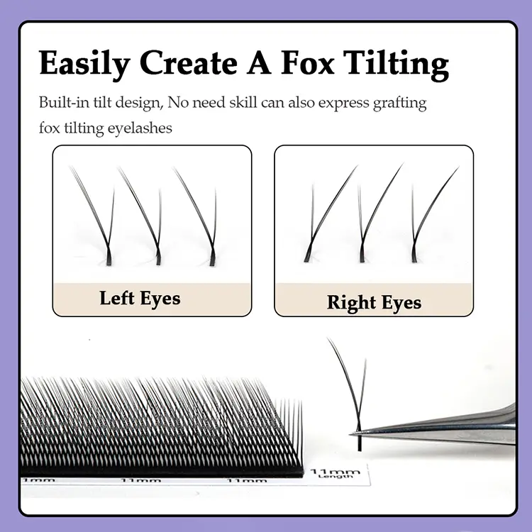సున్నితమైన కంటి మేకప్ ఎస్పి ఐలాష్ ఫ్లయింగ్ యే ఆకారం కొరడా దెబ్బలు బయోమిమెటిక్ ఫాక్స్ కంటి ఆకారాన్ని అవలంబిస్తాయి, చిన్న లోపల మరియు పొడవాటి వెలుపల సహజమైన వక్ర రూపకల్పనతో, ప్రారంభకులకు జనాదరణ పొందిన "ఫాక్స్ ఐ" పైకి ప్రభావాన్ని రూపొందించడం సులభం చేస్తుంది. వినూత్న 11 మిమీ+9 మిమీ మిశ్రమ పొడవు కలయిక, "మూడు పొడవైన మరియు రెండు చిన్న" ఐదు క్లస్టర్ మెష్ నేత ప్రక్రియతో కలిపి, 2 సెం.మీ పొర వ్యత్యాస రూపకల్పనతో కలిపి, సహజమైన మెత్తటి ఫ్లయింగ్ ప్రభావాన్ని సృష్టిస్తుంది. ప్రత్యేకమైన ఫ్లాట్ రూట్ ఫిట్టింగ్ టెక్నాలజీ సహజ వెంట్రుకలతో సరిపోతుంది, ఇది 30%కంటే ఎక్కువ ధరించే స్థిరత్వాన్ని పెంచుతుంది.