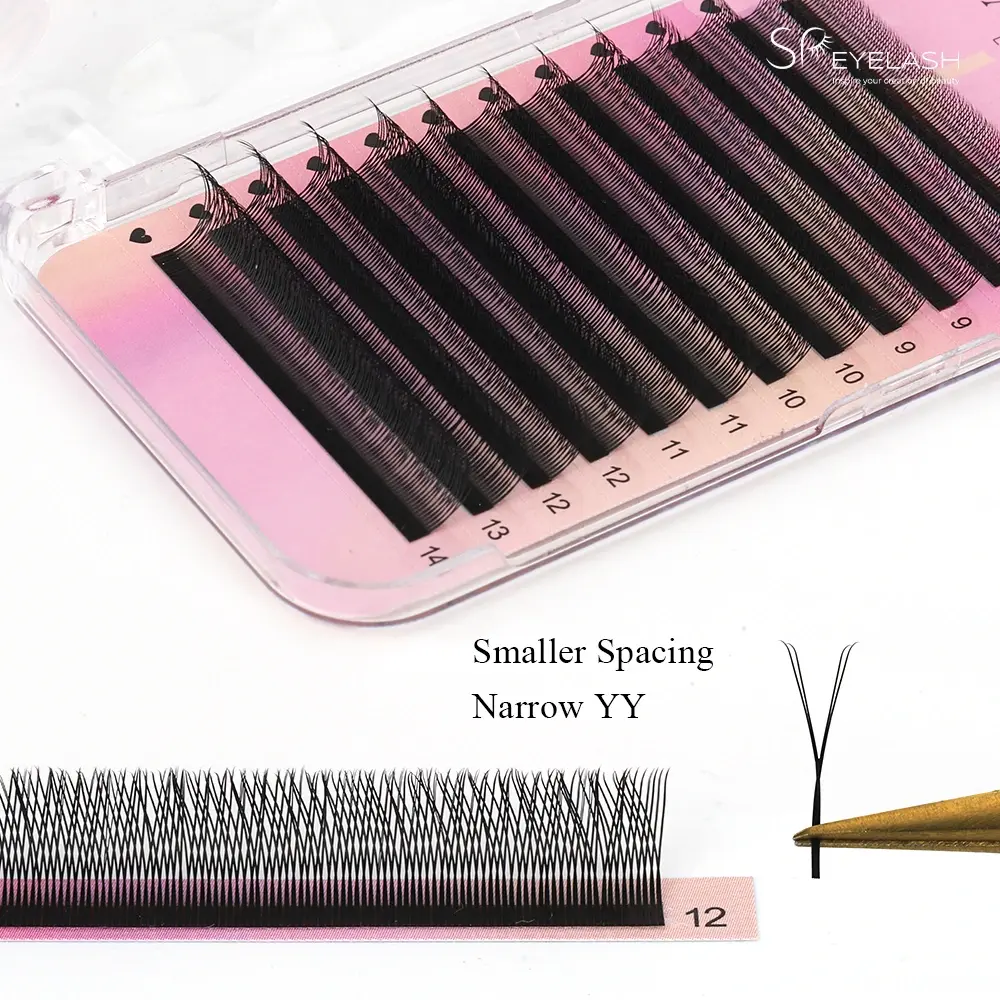 సాంప్రదాయ YY ఆకారపు కొరడా దెబ్బలతో పోలిస్తే, మా అప్గ్రేడ్ చేసిన ఇరుకైన YY లాష్ పొడిగింపులు చిన్న ఓపెనింగ్ మరియు సున్నితమైన పంక్తులను కలిగి ఉంటాయి, ఇది సజావుగా అనుసంధానించబడిన మరియు మరింత భారీ కొరడా దెబ్బ ప్రభావాన్ని సృష్టిస్తుంది. కాంపాక్ట్ అమరిక కొరడా దెబ్బల మధ్య అంతరాలను తగ్గిస్తుంది, ఇది సహజమైన ఇంకా నాటకీయ సంపూర్ణతను సృష్టిస్తుంది. అధిక-సాంద్రత గల కొరడా దెబ్బ అమరిక లోతుగా మరియు పూర్తి కొరడా దెబ్బ రేఖలను ఆకృతి చేస్తుంది, అయితే ఇరుకైన అభిమాని రూపకల్పన నీటర్ మరియు మరింత ఎక్కువ రూపాన్ని నిర్ధారిస్తుంది. ఇంతలో.