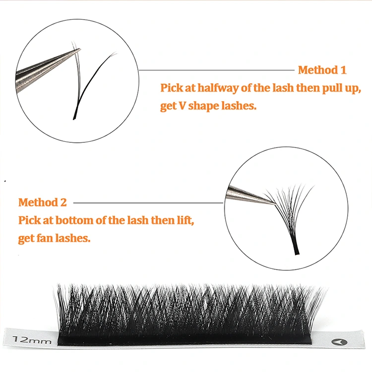 V- ఆకారపు కర్లీ వెంట్రుకల యొక్క నిర్ణయాత్మక లక్షణం వాటి మల్టిఫంక్షనాలిటీ. ఇది W, YY మరియు ఐకానిక్ V- ఆకారపు వంటి ఇతర శైలులను, అలాగే 3D నుండి 6D వరకు వేర్వేరు స్పెసిఫికేషన్లను అందిస్తుంది, ఇది కస్టమర్ అవసరాలకు అనుగుణంగా మెత్తటి తప్పుడు వెంట్రుకలను సృష్టించడం సులభం చేస్తుంది.