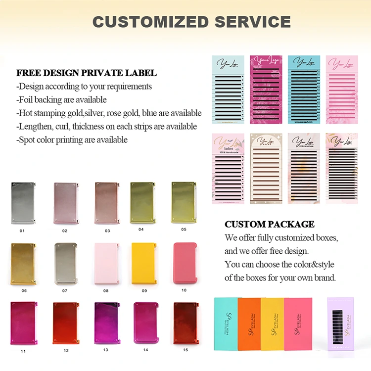 యాజమాన్య బ్రాండ్లు మరియు ప్యాకేజింగ్, తక్కువ కనీస ఆర్డర్ పరిమాణం మరియు ఉచిత డిజైన్ మద్దతుతో సహా వి-ఆకారపు వెంట్రుక కర్లర్ల కోసం ఎస్పీ ఐలాష్ విస్తృత శ్రేణి అనుకూలీకరణ ఎంపికలను అందిస్తుంది. బల్క్ ఆర్డర్ను ఉంచే ముందు, దయచేసి అందుబాటులో ఉన్న ఉచిత నమూనాలను ఉపయోగించి నాణ్యతను నమ్మకంగా పరీక్షించండి.